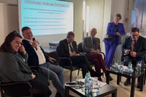 Eine besondere Ehre war die Teilnahme des ukrainischen Botschafters Dr. Vasyl Khymynets, der die internationale Bedeutung und Dringlichkeit der MedEvac Arbeit unterstrich. Ergänzt wurden seine Worte durch Videobotschaften von Michela Matuella (EU Kommission), Dr. Ihor Perehinets (WHO Europe) und Viktor Liashko (ukrainischer Gesundheitsminister). Sie machten deutlich, dass die österreichische MedEvac Arbeit Teil eines größeren europäischen und humanitären Netzwerks ist – und dass unser Einsatz weit über die Grenzen hinweg spürbar ist.