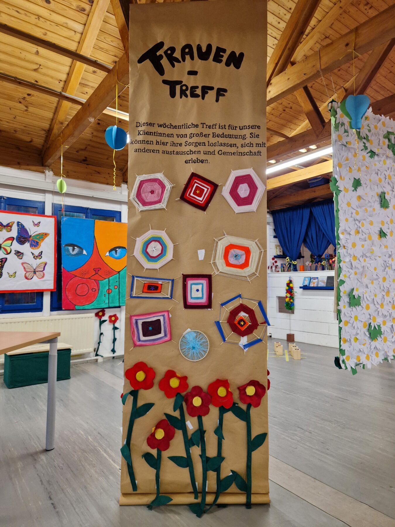Zu sehen sind auch verschiedene Handarbeiten. Frauen und Männer haben sie bei separaten Treffen, wie dem Frauentreff und dem Männercafé, angefertigt. Sie wurden aus recycelten Materialien hergestellt – so sind aus Abfall ausdrucksstarke Kunstwerke entstanden.