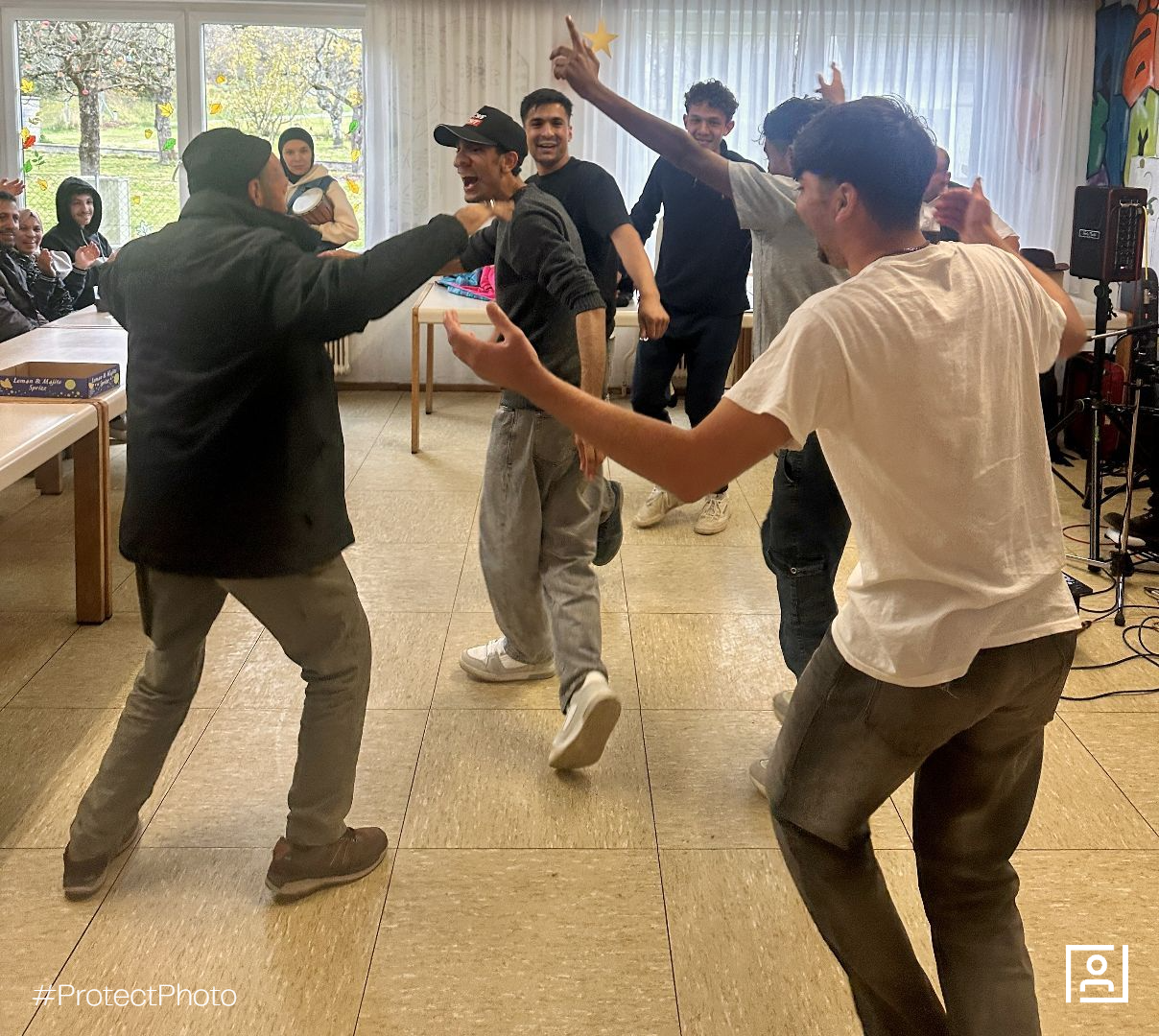 Gabriela übernahm die Moderation, die auf Arabisch und Dari übersetzt wurde. Aber in Wahrheit waren die Worte Nebensache, wie Roland bemerkt: “Musik ist eine internationale Sprache und eine Sprache des Herzens. Durch den Rhythmus kommen wir in Bewegung und sind dadurch sofort verbunden.“
